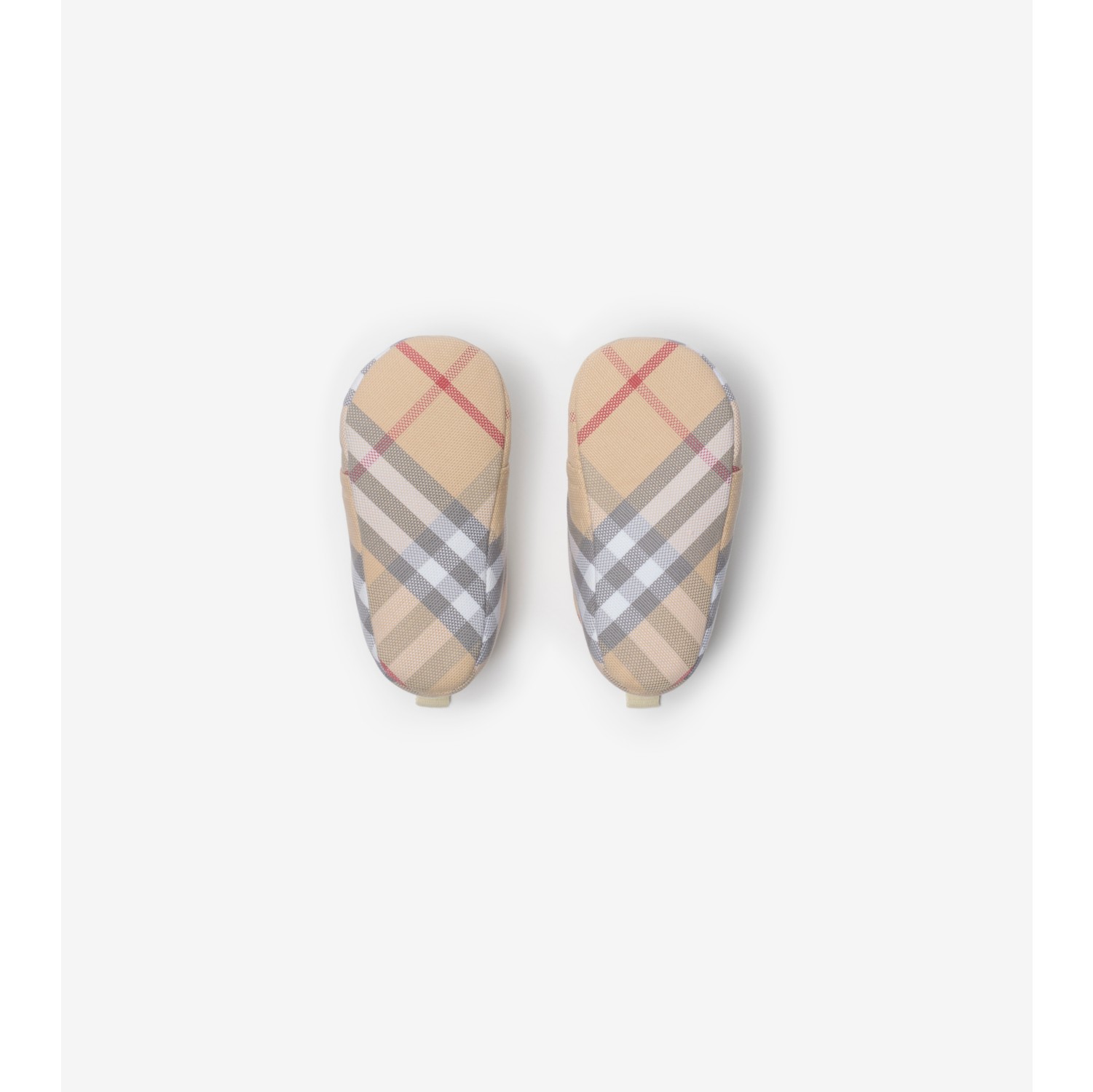 A pair of shoes made in Italy from a Burberry Check cotton blend with a hint of silk. The style is set on a soft fabric sole and features elasticated laces.